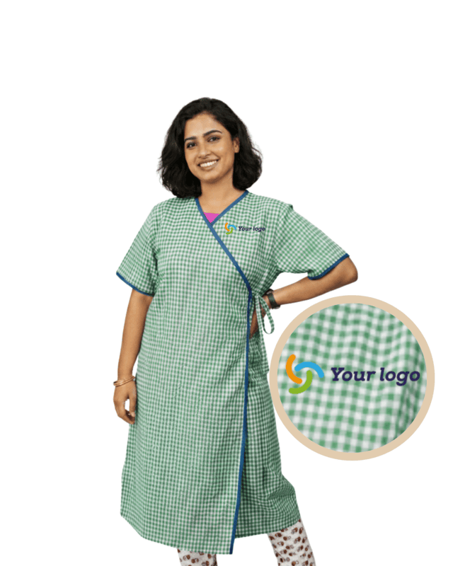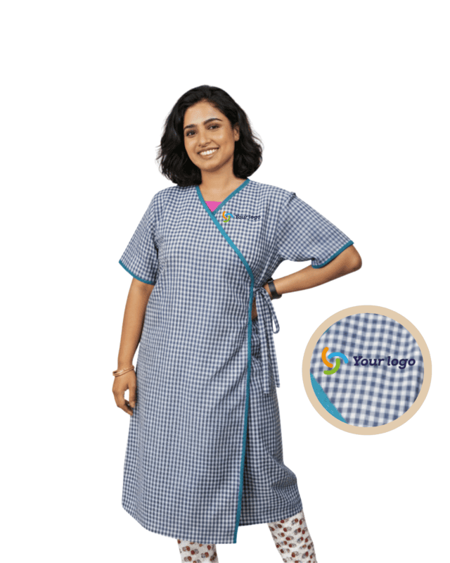 "The Patient Check Gown is a comfortable and hygienic hospital garment designed for easy wear during medical checkups and procedures. Made from soft, breathable fabric, it provides full coverage with convenient back or front openings for ease of examination. Ideal for clinics, hospitals, and diagnostic centers."