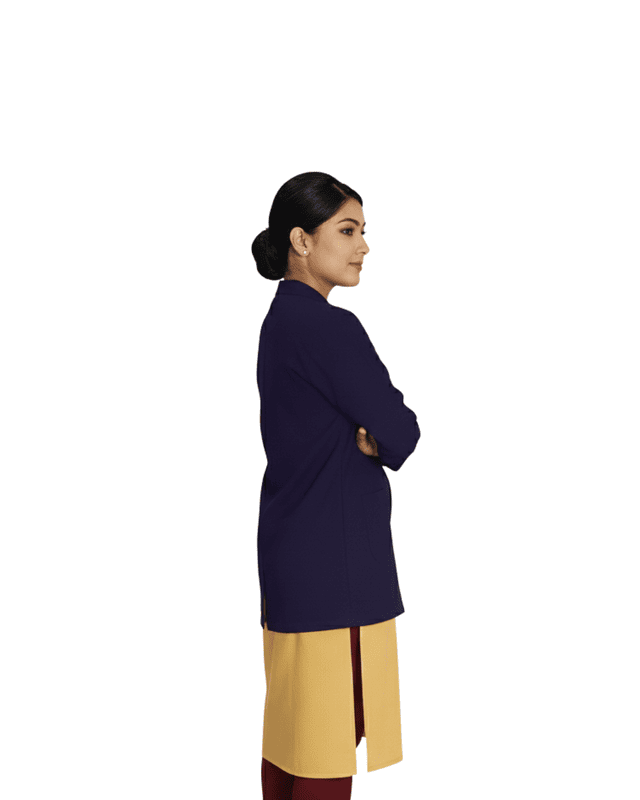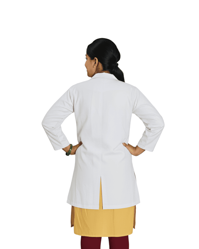 "This regular fit full sleeve lab coat apron is designed for comfort and professionalism. Made from durable fabric, it provides full coverage and protection during laboratory or medical work. Ideal for doctors, lab technicians, and healthcare professionals."
