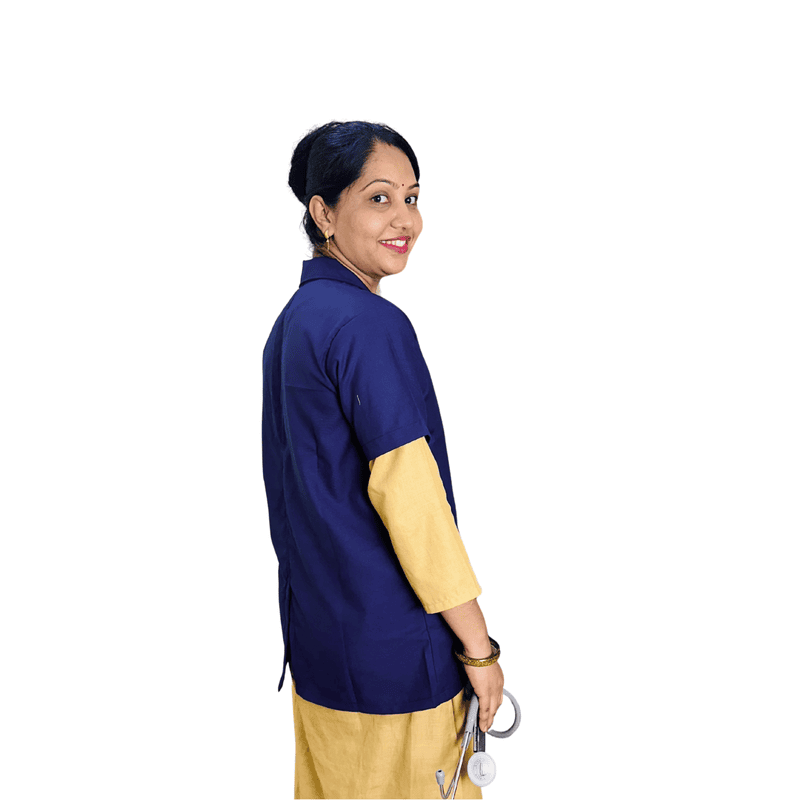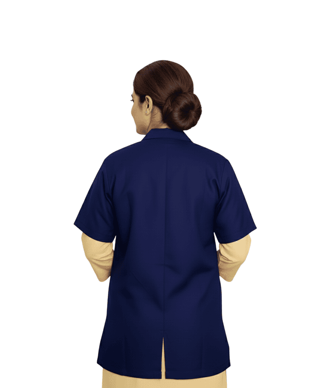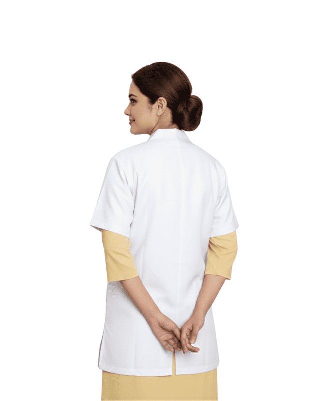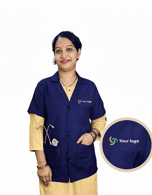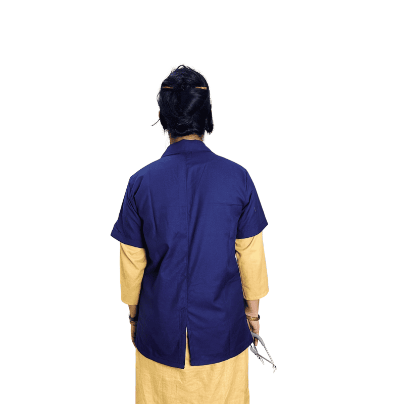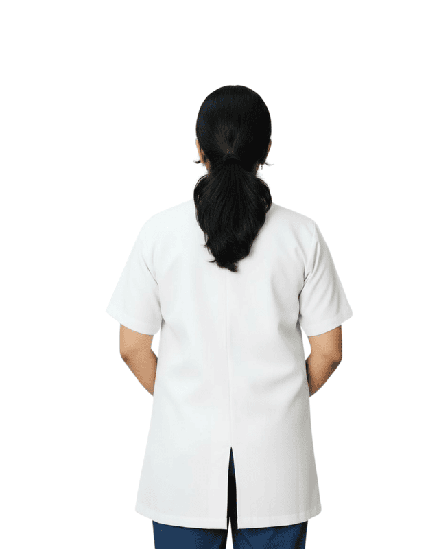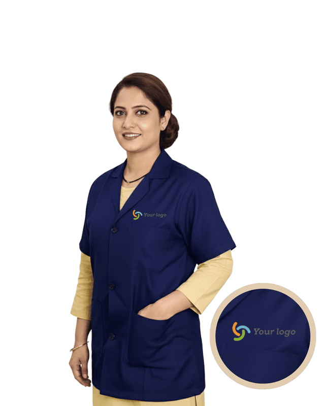 “Half-sleeve lab coat designed for comfort and mobility, featuring a professional fit, lightweight fabric, and practical pockets for daily use in medical and laboratory environments.”