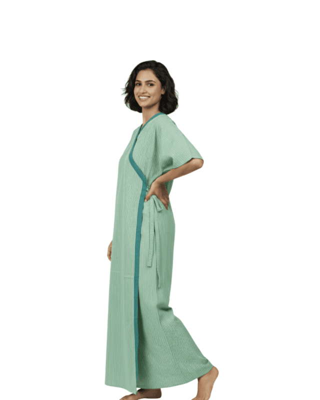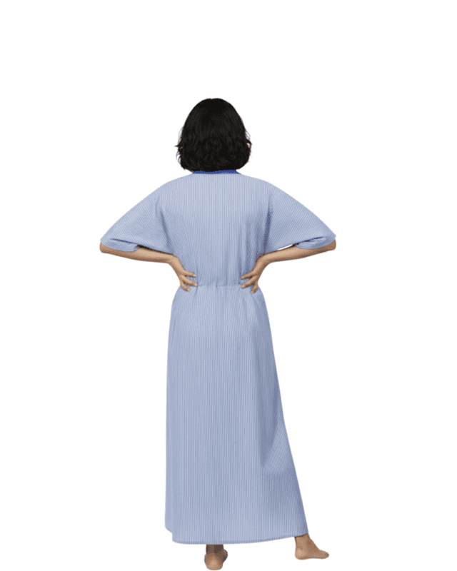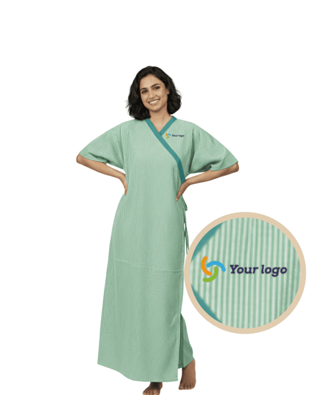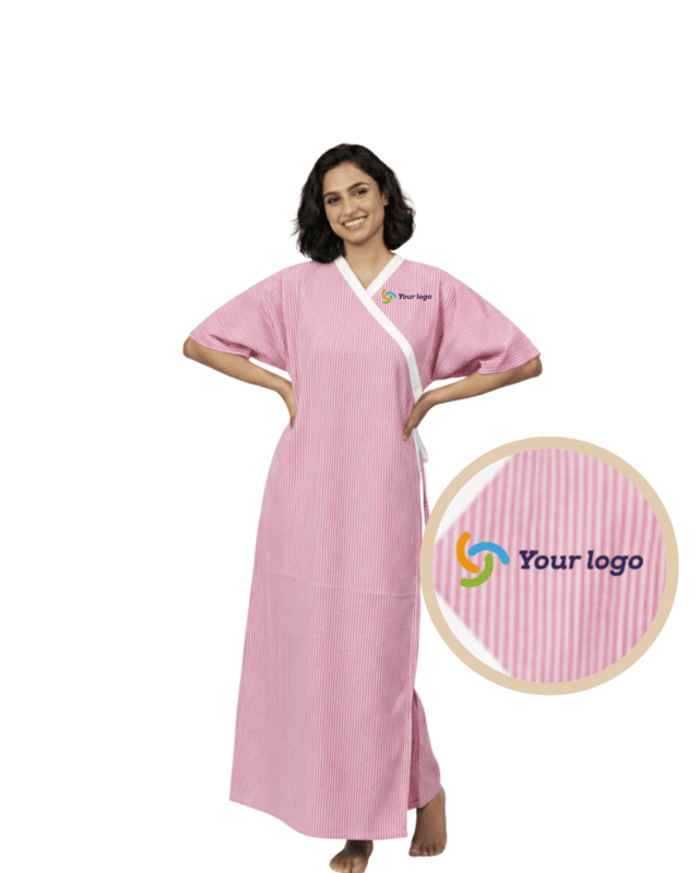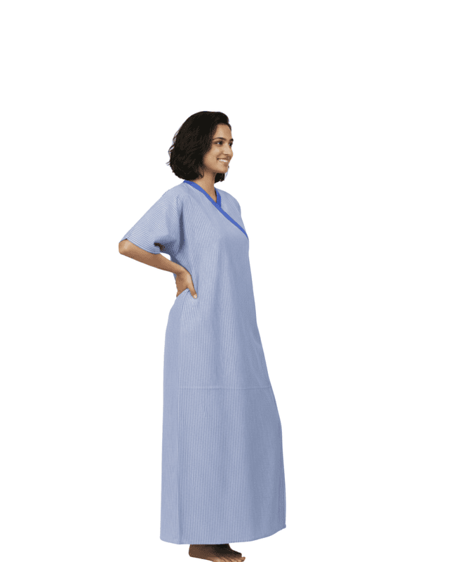 "A comfortable unisex patient gown featuring soft lining fabric for added comfort. Designed with an easy tie-back closure and free-size fit, ensuring convenience and modesty during medical checkups or hospital stays."